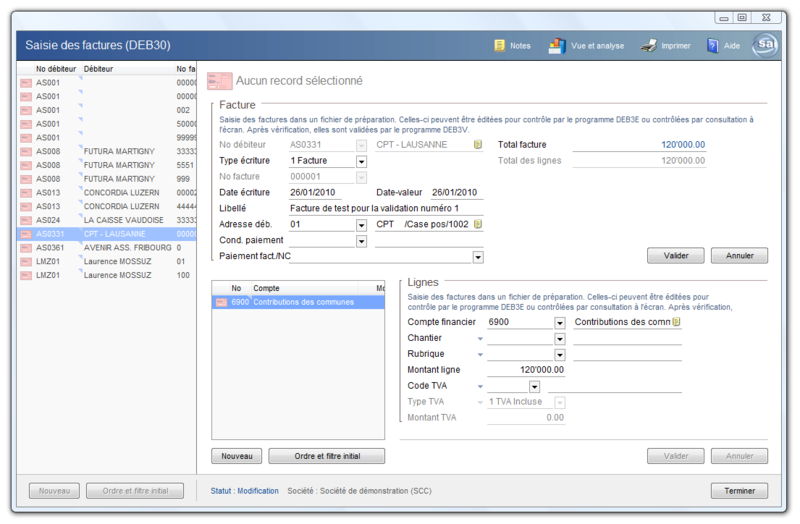Avec ce logiciel débiteurs, SAI propose un mode de gestion efficace, simple d’utilisation, convivial et performant. Les modules qui le composent s’intégrent à la comptabilité, à la gestion commerciale et aux fournisseurs. La gestion des paiements et des factures se présente sous forme de tableaux de bord, à disposition des responsables de gestion. L’utilisation du mode HTML pour toutes les éditions garantit la portabilité et l’ouverture des documents. Le mode de gestion transactionnel assure la sécurité des données et des traitements.