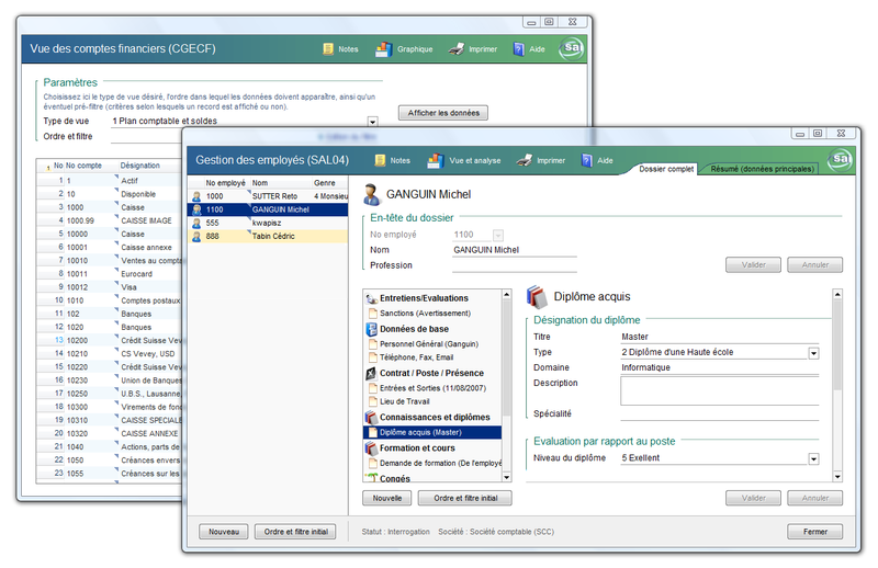 La comptabilité personnelle est directement connectée à toutes les comptabilités de l’ERP. Lors d’une saisie en comptabilité financière, alimentation en parallèle des comptabilités analytiques et personnelles. La facturation débiteur alimente les recettes, la facturation fournisseurs alimente les charges. Les facturations sont automatiques périodiques ou ponctuelles, injectées dans les comptabilités débiteurs et fournisseurs, avec retour des éléments comptable dans la comptabilité de chaque dossier. Les paiements automatiques sont traités par e-banking.